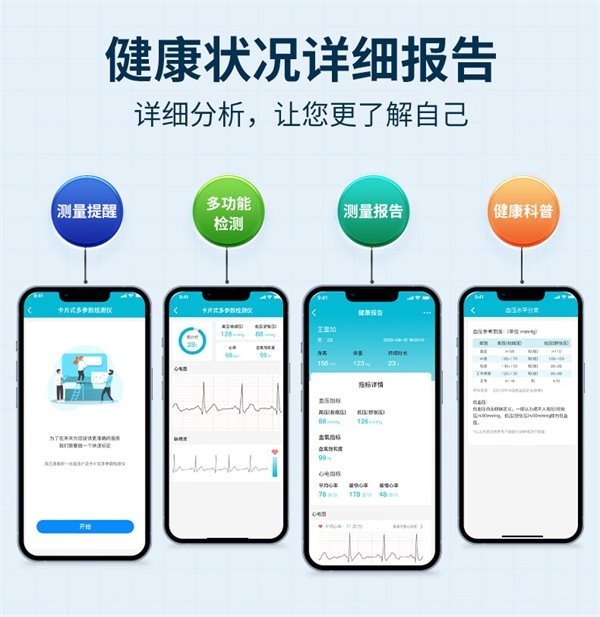 北京超思推出的这款便携式血压计还具备多参数监测功能,除了血压测量外,它还可以监测心电图、血氧等基础生理参数。用户可以通过手机APP获取全面的健康报告和专业的历史数据分析,从而更好地管理自己的健康状况。