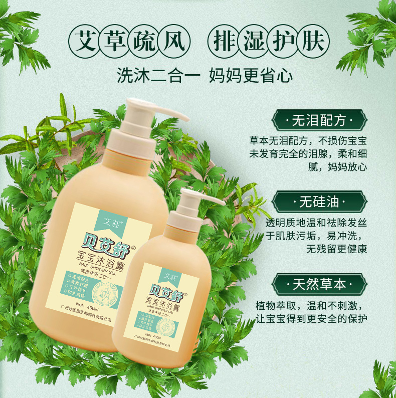 公司新推出的艾莊贝艾舒宝宝沐浴露,温和亲肤无刺激,专为宝宝研发,洗沐二合一,一瓶两用。