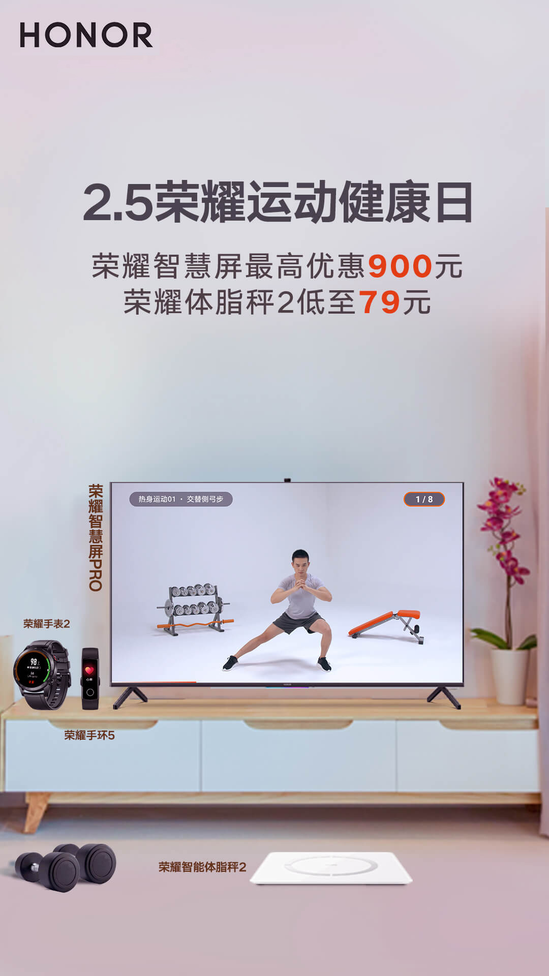 春节长假期间,很多人的生活节奏被打乱。饮食睡眠不规律、美食吃太多、宅太久都免不了招惹上“过年肥”。近日,@荣耀智慧生活 官微宣布2月5日将开启“荣耀运动健康日”活动,并提醒大家“在家办公也要好好运动,新的一年要健康满分”,不妨尝试用荣耀智慧屏PRO AI健身、用荣耀手表2测试血氧饱和度、用荣耀智能体脂秤2检测多项身体指标。值得注意的是,活动当天购买荣耀智能体脂秤2还能享受低至79元的优惠价。