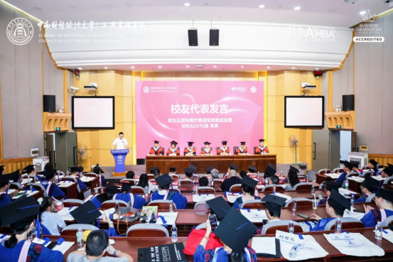在校友代表发言环节,禹爽院长以《以初心为舵,以实干为帆》为题,从“认知的跃迁、思维的进化、信念的凝聚”三个关键词出发,分享了自己在医疗管理一线深耕十余年的思考与实践。他坦言:“中南大MBA不仅塑造了我的知识体系,更刷新了我对管理的认知维度——从直觉到逻辑,从经验到系统。”他鼓励在场毕业生“沉下心来、走稳脚下、仰望星空”,在现实中深耕,在理想中飞翔,心有所信,行有所至。