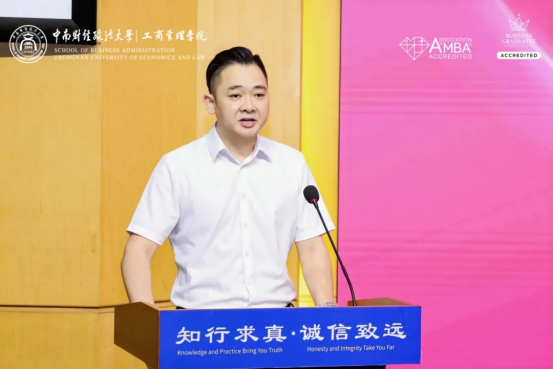 典礼伊始,工商管理学院院长吴海涛教授以“制胜新赛道、培育新动能、开拓新局面”为寄语,强调工商管理教育应锚定“商道惟诚、创新求变、全球担当”,鼓励毕业生在复杂多变的时代背景中坚定信念、笃行实干。教师代表、校友代表、毕业生代表等也依次登台发言,现场气氛庄严热烈、温情满满。