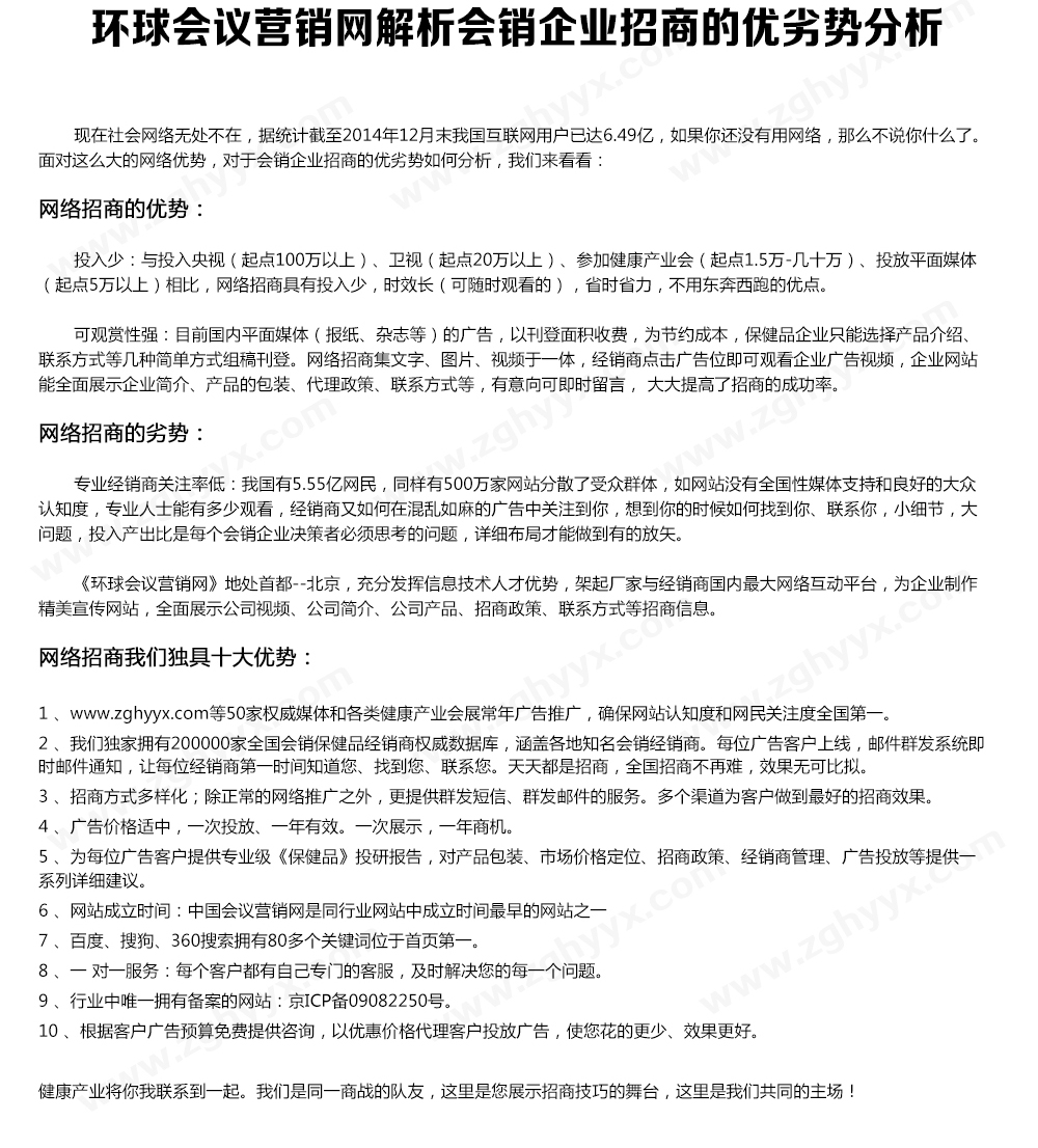 环球会议营销网解析会销企业招商的优劣势分析